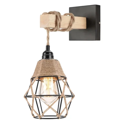 Arandela Vintage Industrial – Metal e Corda de Cânhamo