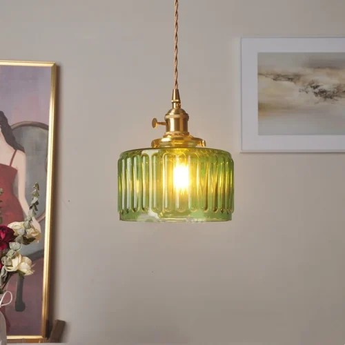 Pendente de Vidro Verde Retrô – Luminária Clássica