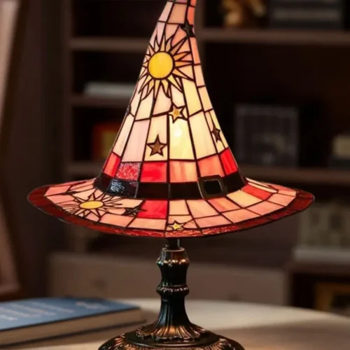 Luminária de Mesa Vitral Chapéu de Bruxa USB