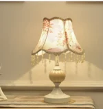 Transforme seu ambiente com o charme atemporal do abajur europeu clássico. Com design sofisticado, base metálica dourada e cúpula em tecido bordado com franjas delicadas, ele traz um toque de romantismo e requinte para qualquer espaço.