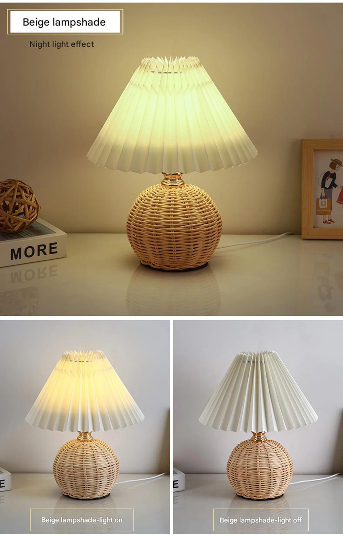 Dê um toque de aconchego e elegância retrô ao seu ambiente com o abajur de rattan com tecido plissado. Compacto e funcional, ele é perfeito para criar uma iluminação suave e acolhedora, ideal para quartos, salas de estar e escritórios.