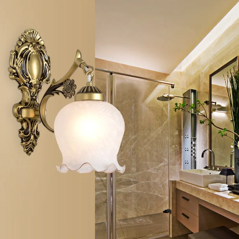 Arandela de Parede Estilo Europeu com Vidro Fosco e Dourado