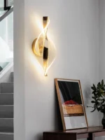 A luminária de parede LED com brilho dourado e formato dinâmico é um toque de luz único que chama a atenção. Sua linha moderna confere: