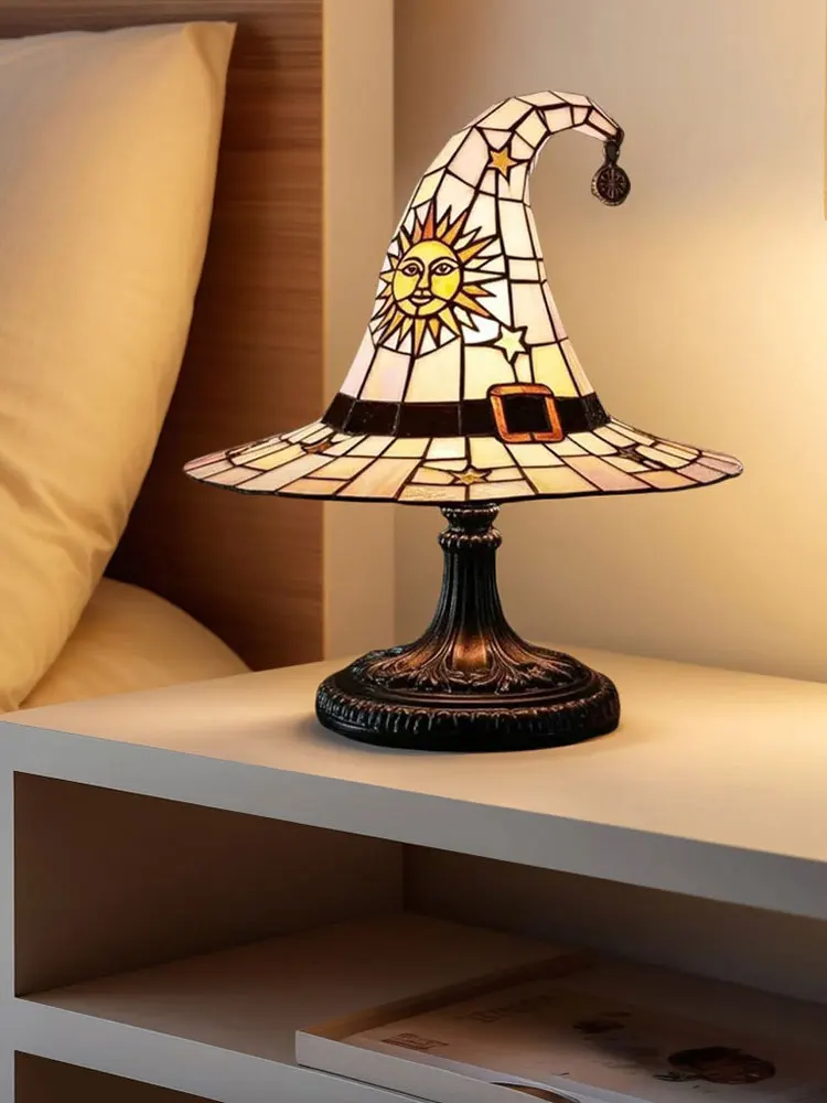 ✨ Luminária de Mesa Vitral Chapéu de Bruxa USB – Um toque mágico para iluminar seus ambientes!