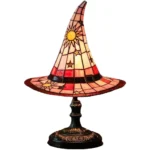 Com design criativo em formato de chapéu de bruxa em vitral colorido, esta luminária combina arte e funcionalidade, criando uma iluminação aconchegante e cheia de personalidade.