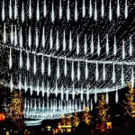 As Luzes LED Chuva de Meteoros são perfeitas para criar um efeito mágico e inesquecível em ambientes externos e internos. Com design inspirado em meteoros caindo do céu, elas iluminam árvores, jardins, fachadas e eventos especiais com cores vibrantes e encantadoras.