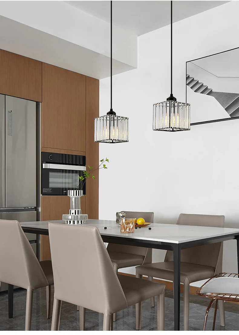 Com design moderno e minimalista, ele é ideal para compor bancadas de cozinha, salas de jantar, áreas gourmet, restaurantes e até mesmo espaços comerciais que desejam transmitir requinte e estilo. O cristal trabalhado garante uma difusão de luz suave e equilibrada, ao mesmo tempo em que adiciona brilho e charme ao ambiente. Sua iluminação não apenas clareia o espaço, mas também valoriza a decoração, tornando-se um ponto focal de destaque.