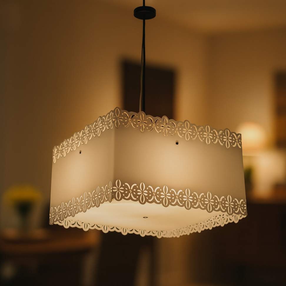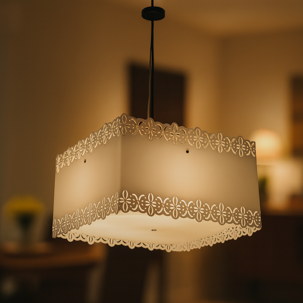 Com um formato que remete ao contorno de uma flor aberta, o pendente é confeccionado em acrílico leitoso de alta qualidade, proporcionando um efeito visual delicado e elegante. O fundo fosco garante difusão suave da luz, evitando ofuscamento e criando uma atmosfera agradável e relaxante.