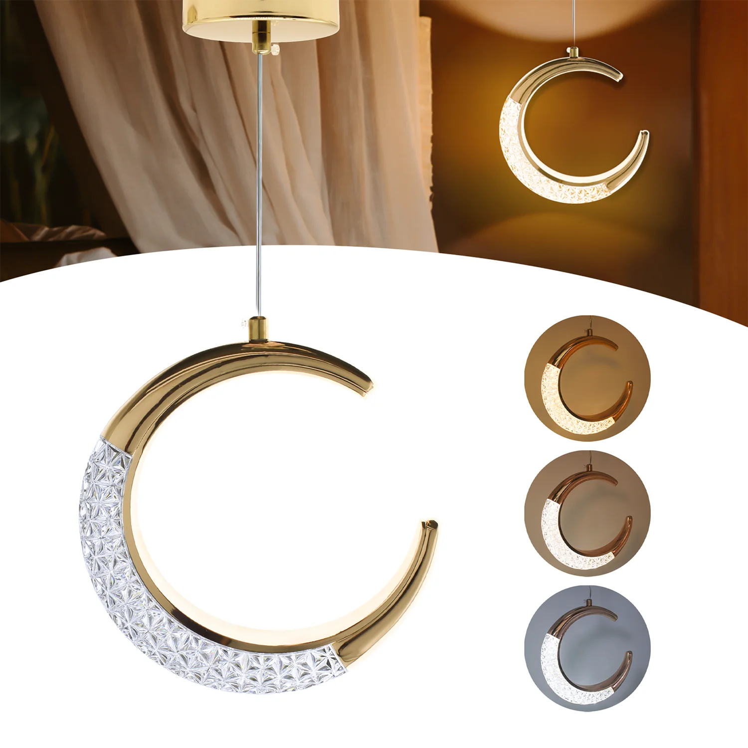 Pendente de LED – Lua Dourado, 110V-220V, Luz Cambiável
