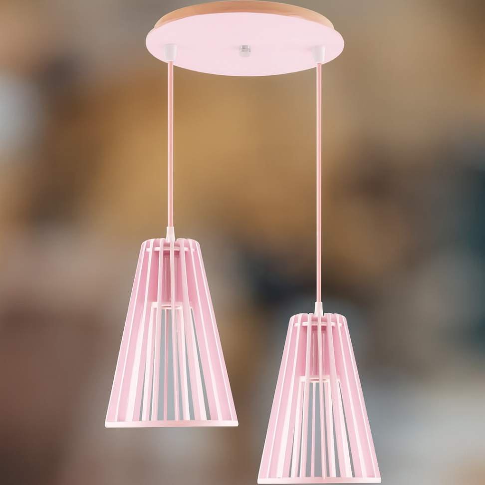 Pendente Duplo Rosa Claro E27 – Delicadeza, modernidade e estilo em um só produto