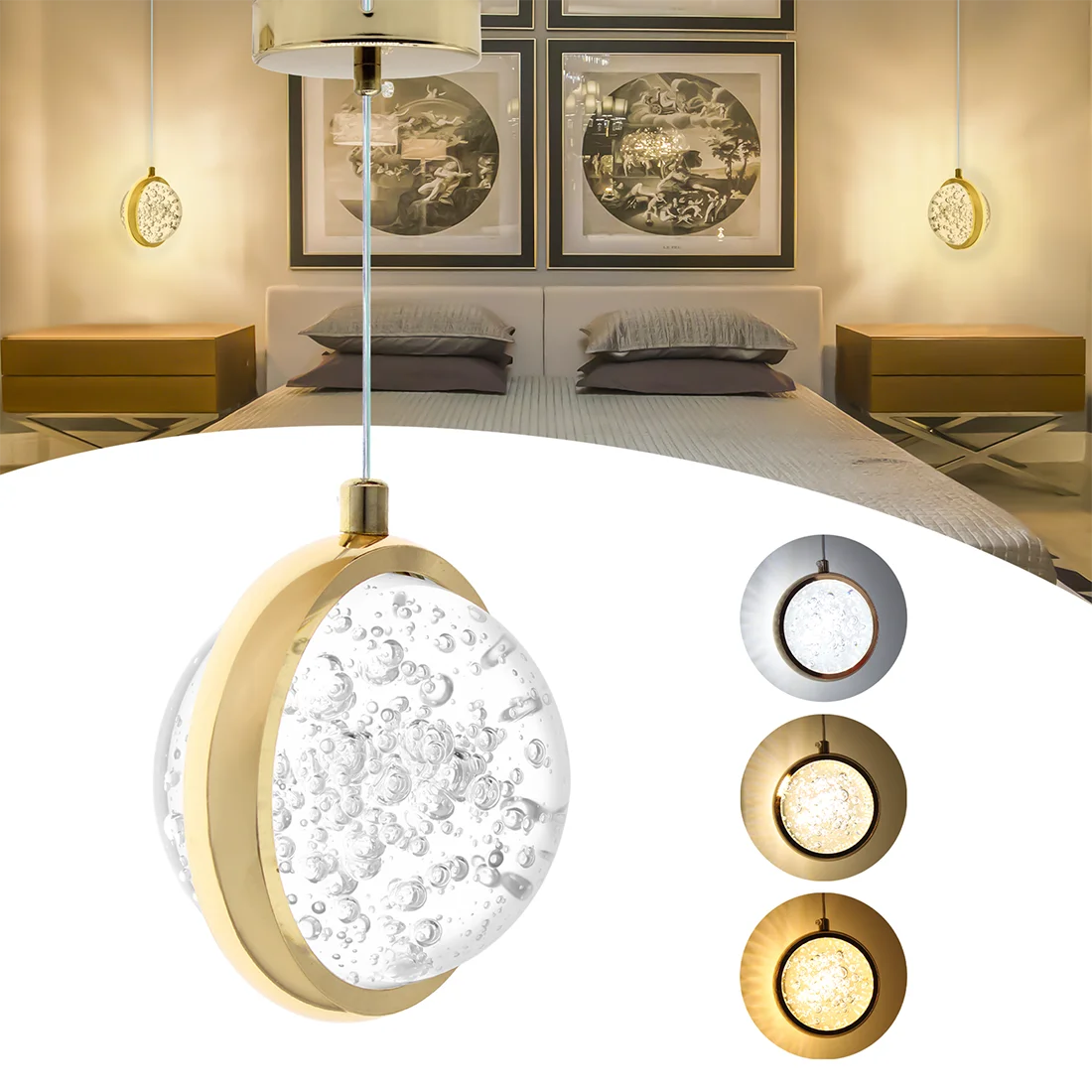 Pendente Saturno Cristal Redondo Brilho 8019 – Dourado, 110V-220V, Luz Cambiável